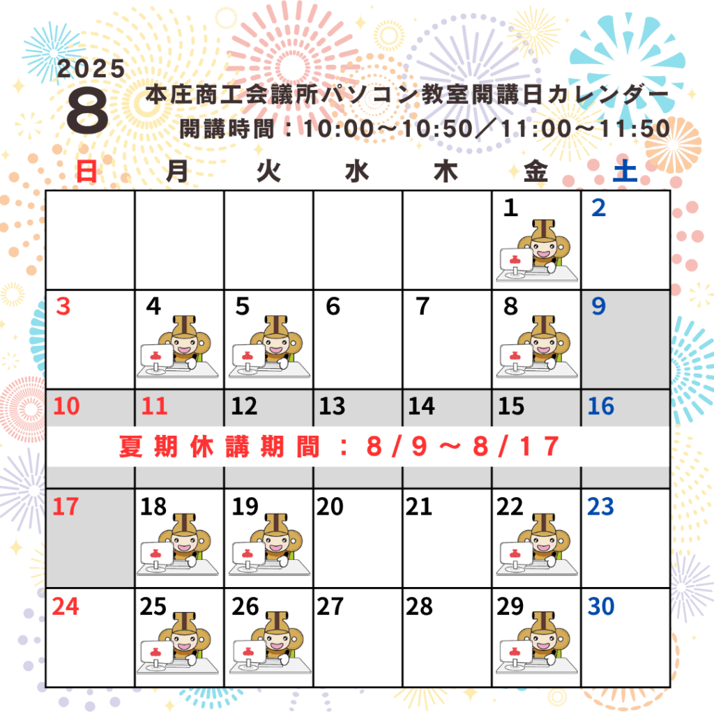 【お知らせ】8月の開講日(各種手続日)