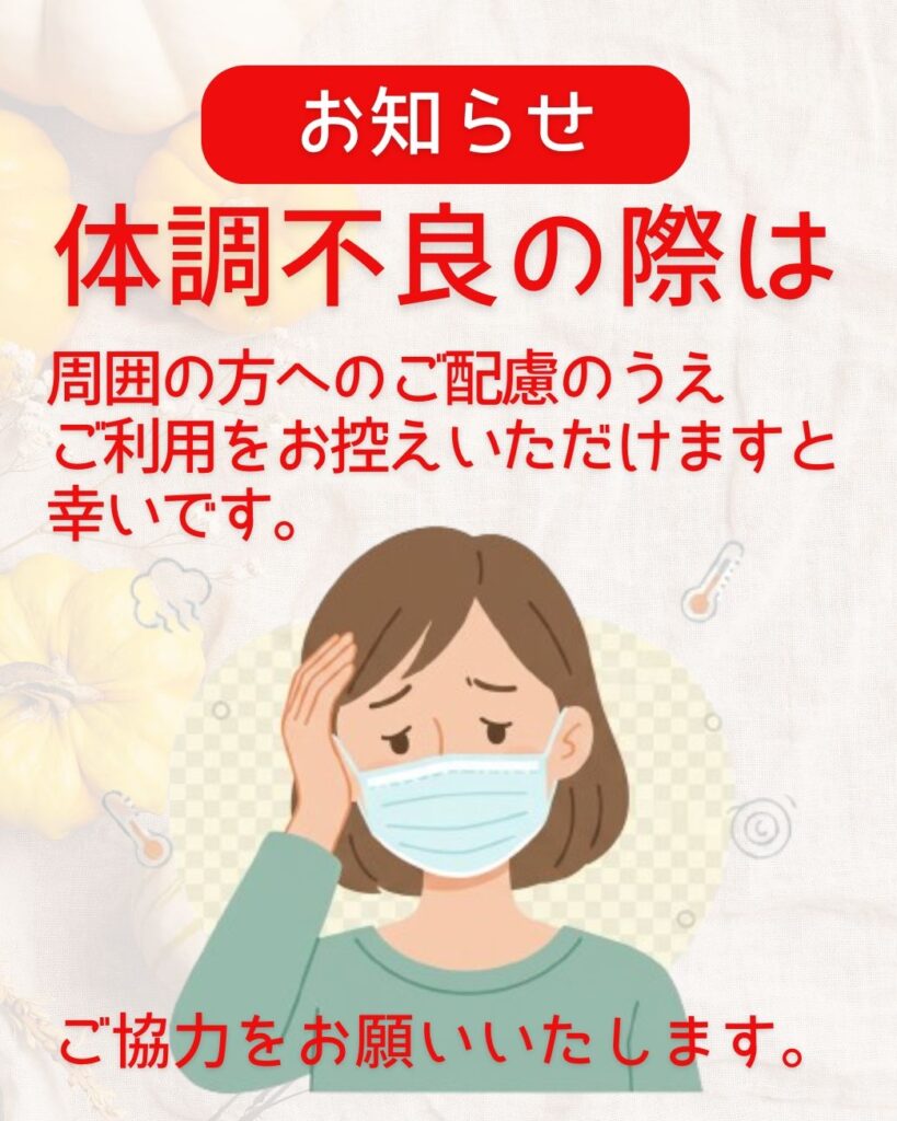 体調がすぐれない場合は、無理をなさらず受講をお控えください。